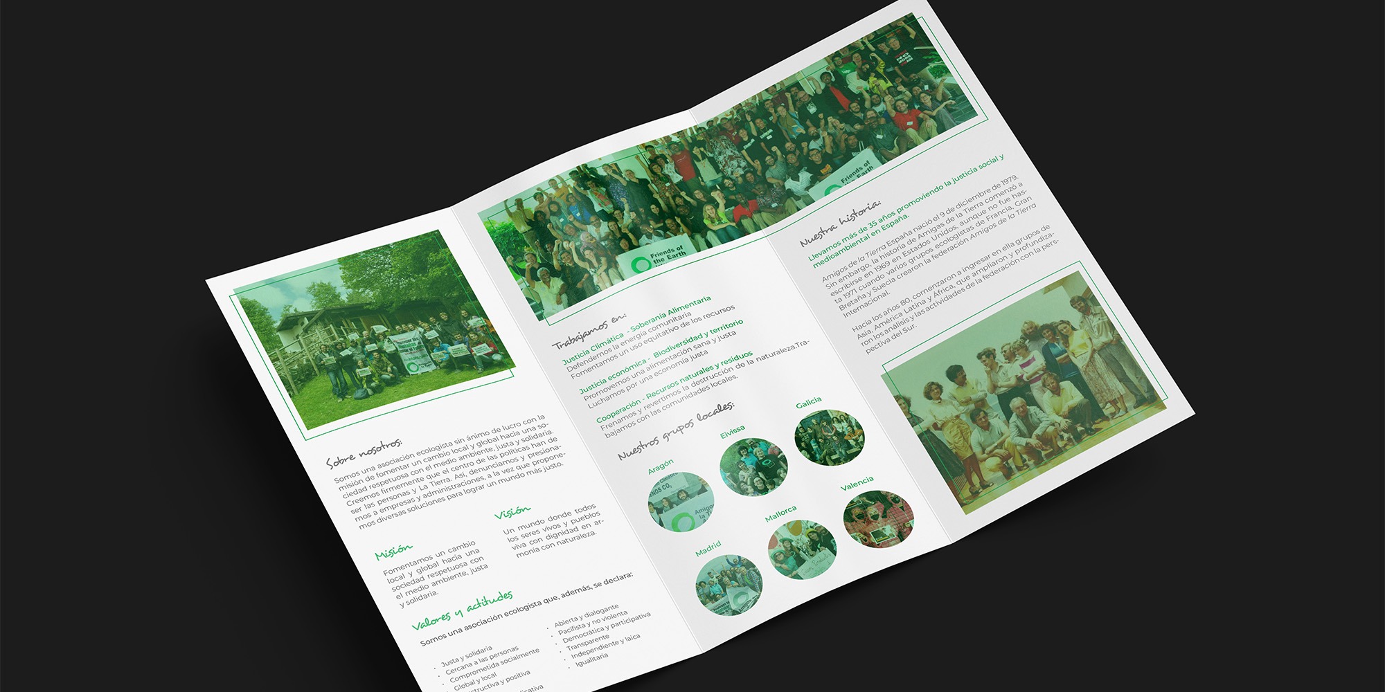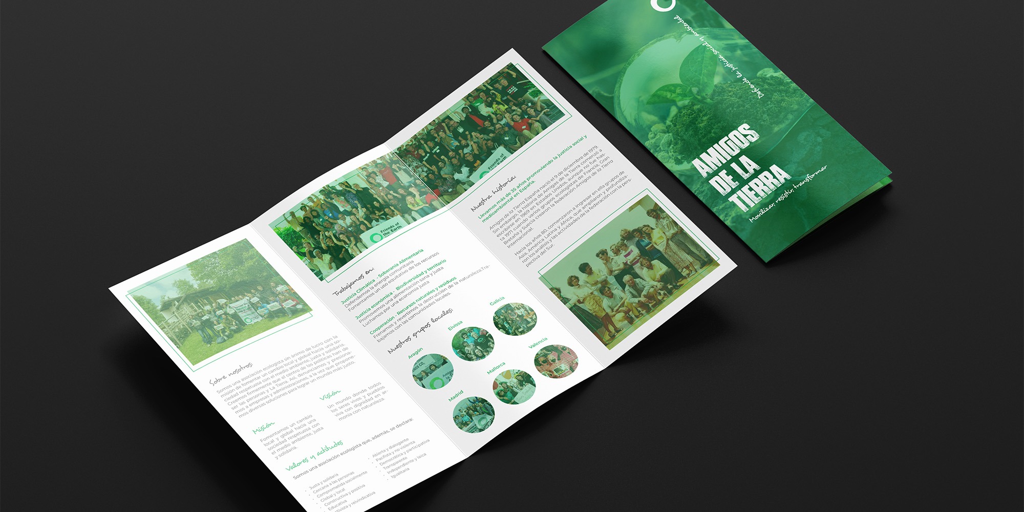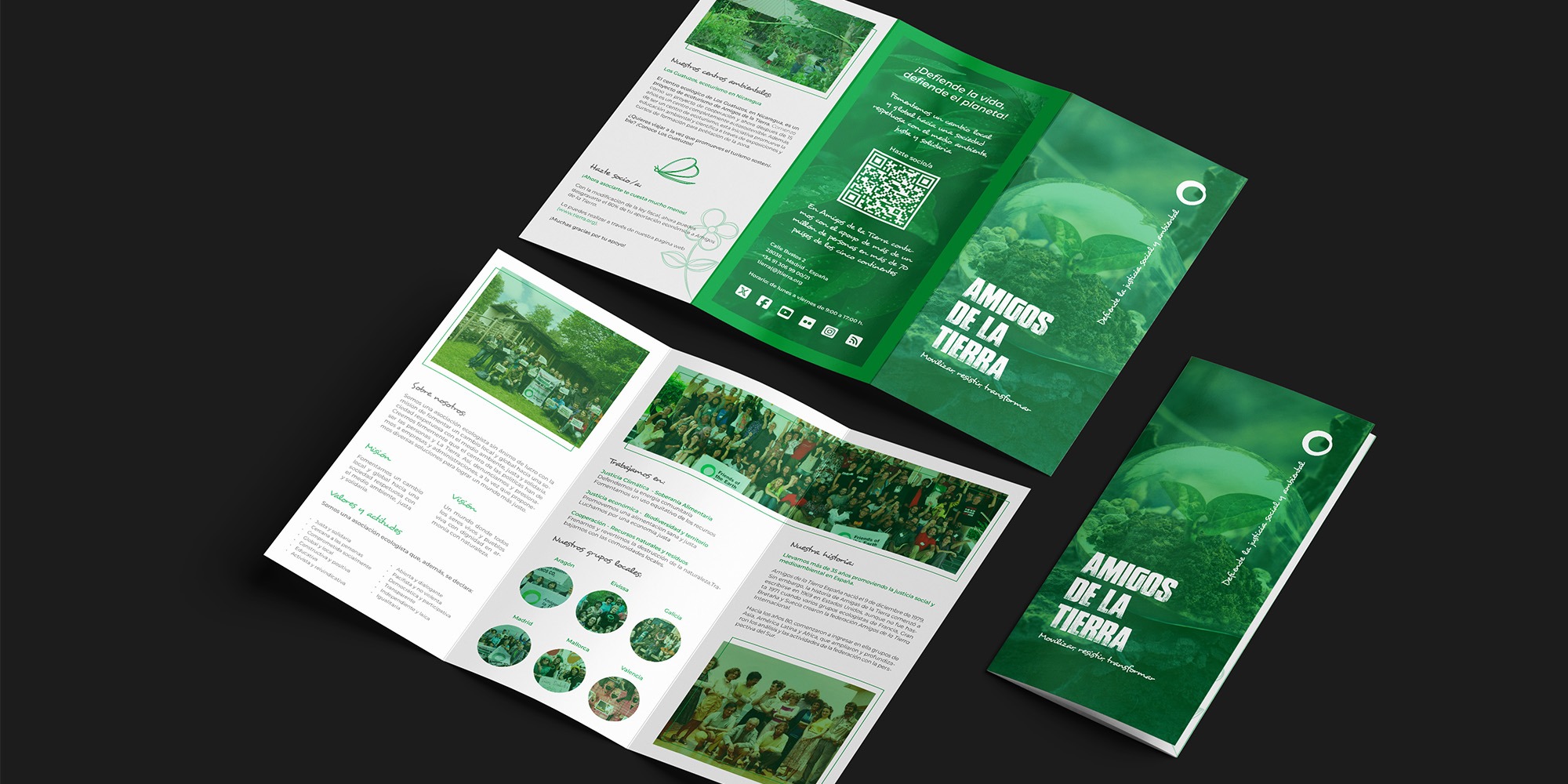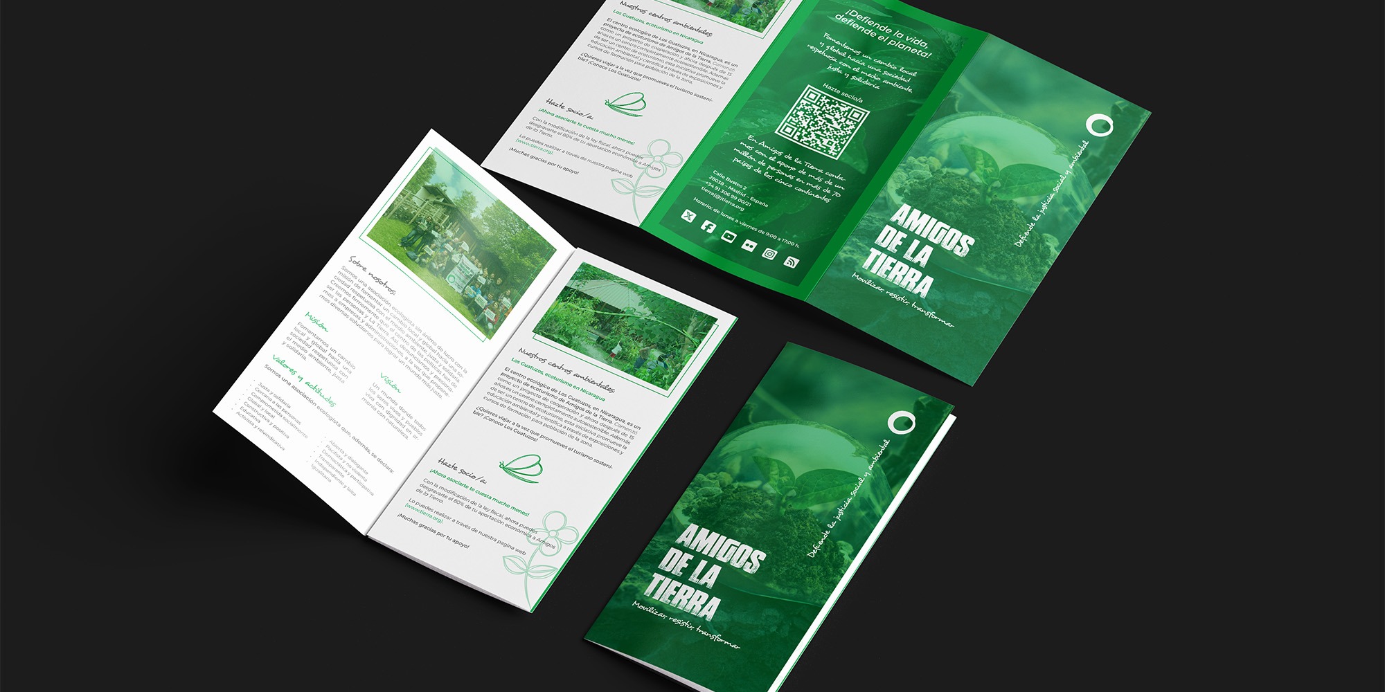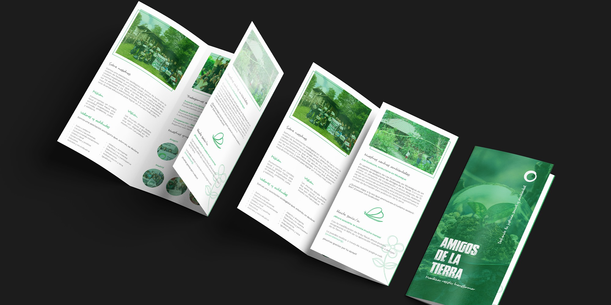 The design aims to clearly communicate the organization’s mission, environmental initiatives, and community actions through a visually engaging layout.
