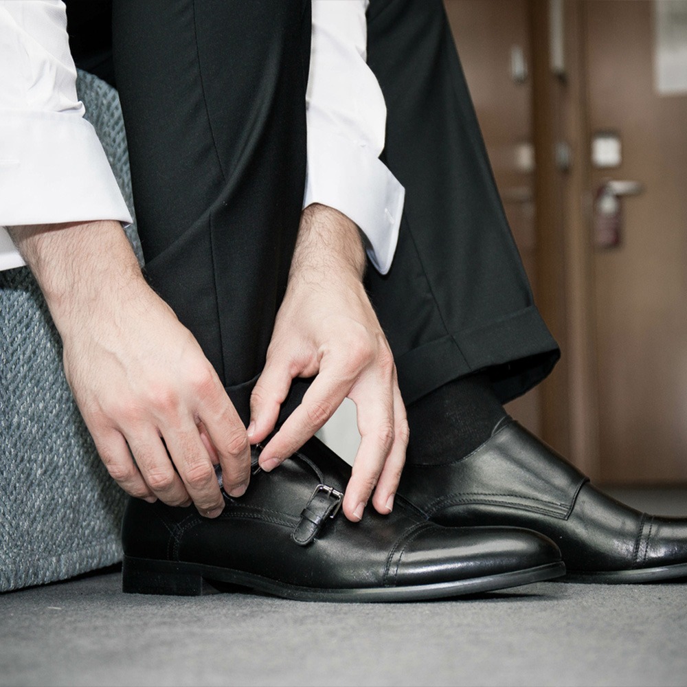 The concept blends classic sophistication with modern digital aesthetics, reflecting the craftsmanship and timeless style associated with high-end men’s shoes.